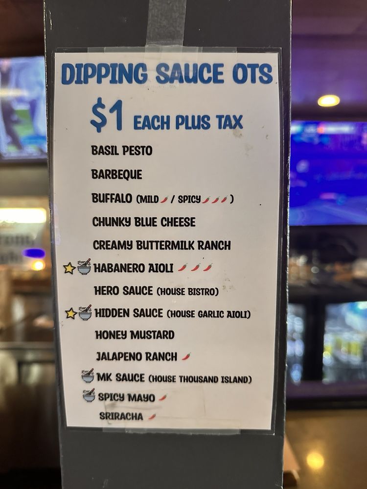 Fried Chicken Tenders, Cheddar Cheese, Habanero Aioli, Hidden Sauce, Honey Mustard