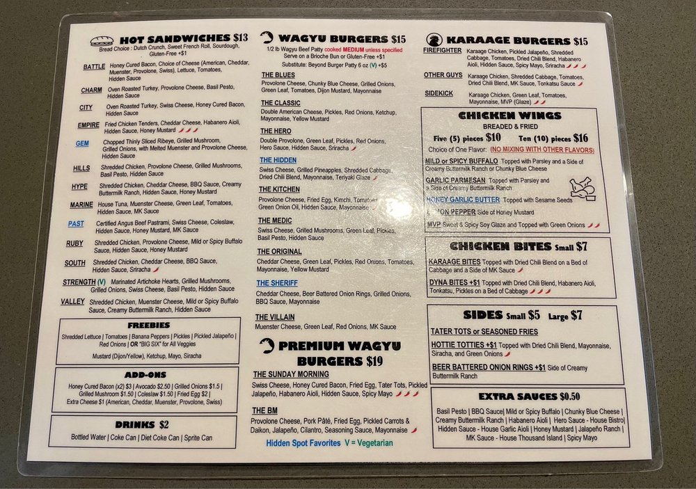 Half (1/2) Pound Wagyu Beef Patty, Double Provolone, Green Leaf, Pickles, Red Onions, Hero Sauce, Hidden Sauce, Sriracha